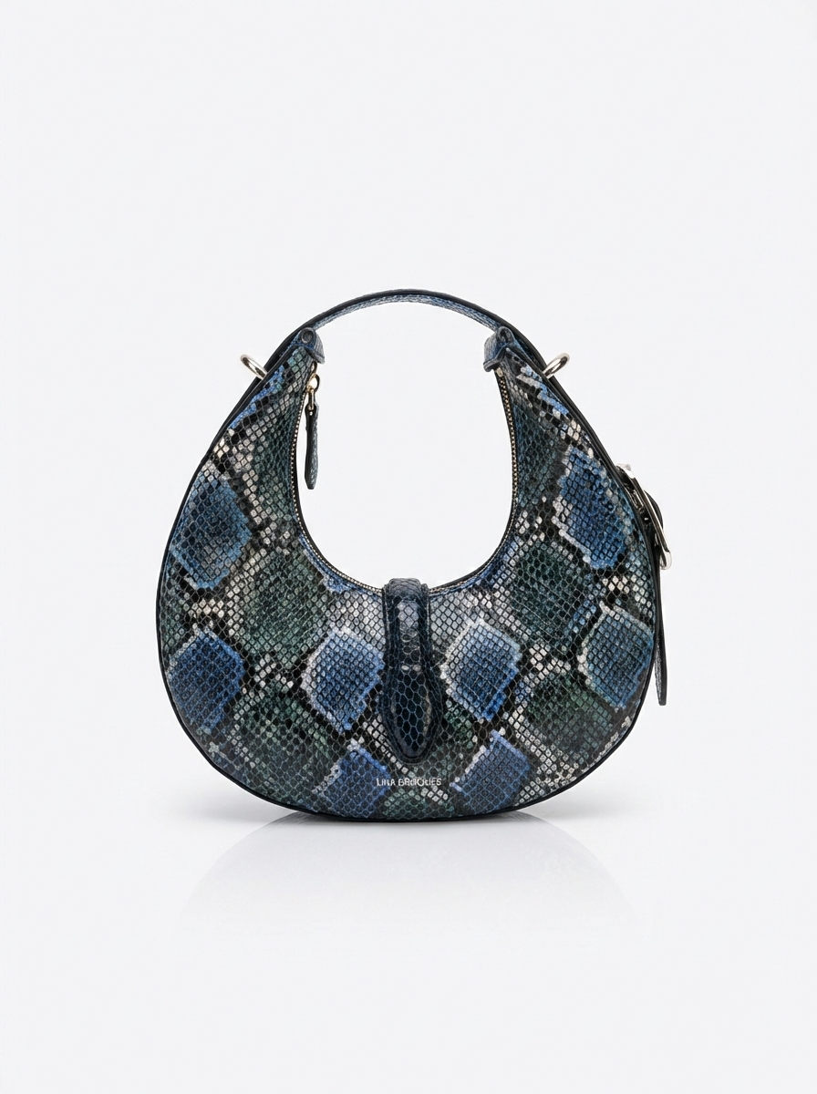 The Fer-de-Lance bag features a striking round design inspired by the powerful fer-de-lance snake, with a snake head closure for bold sophistication. Combining elegance and edge, this bag offers ample space while embodying the spirit and majesty of its namesake.