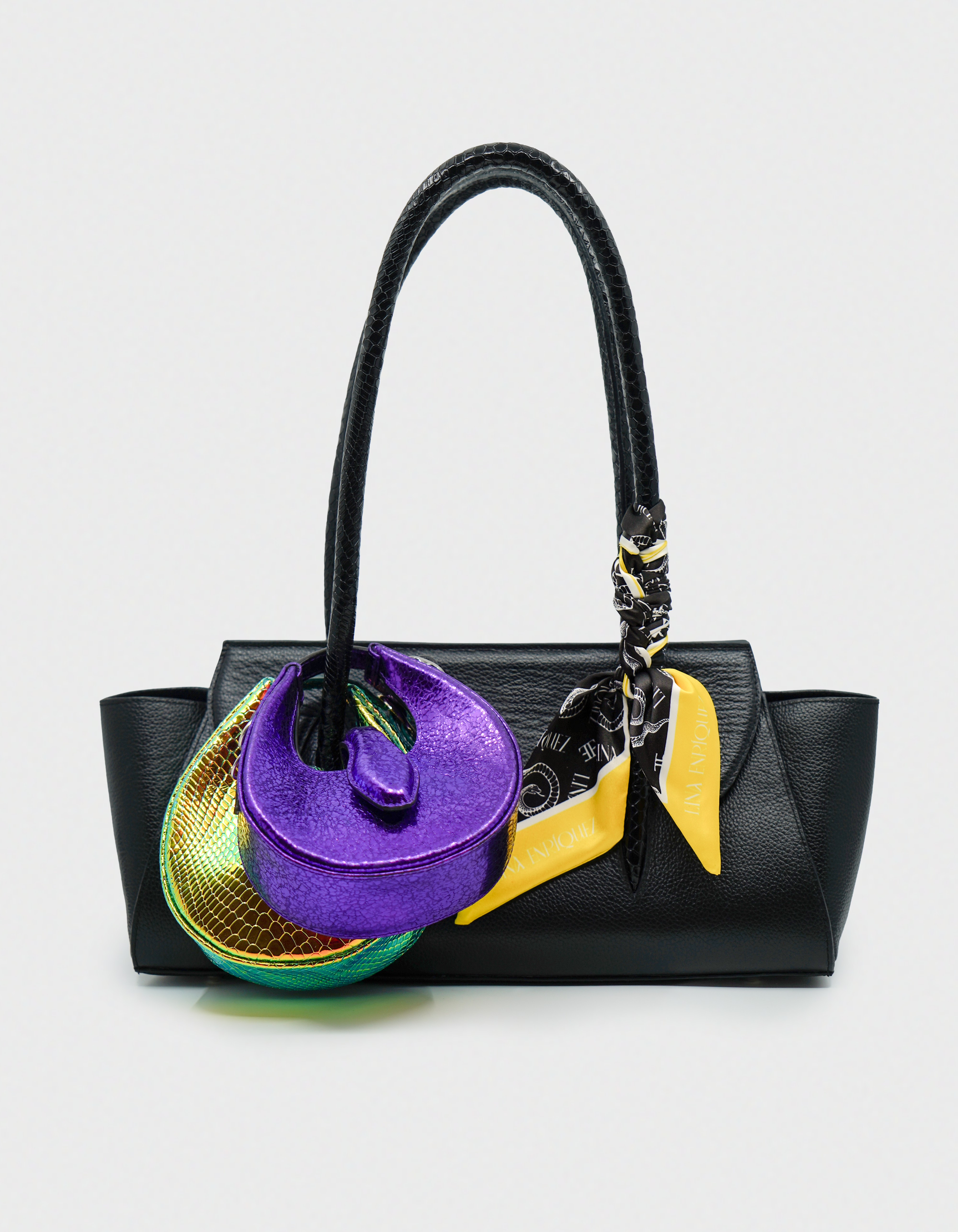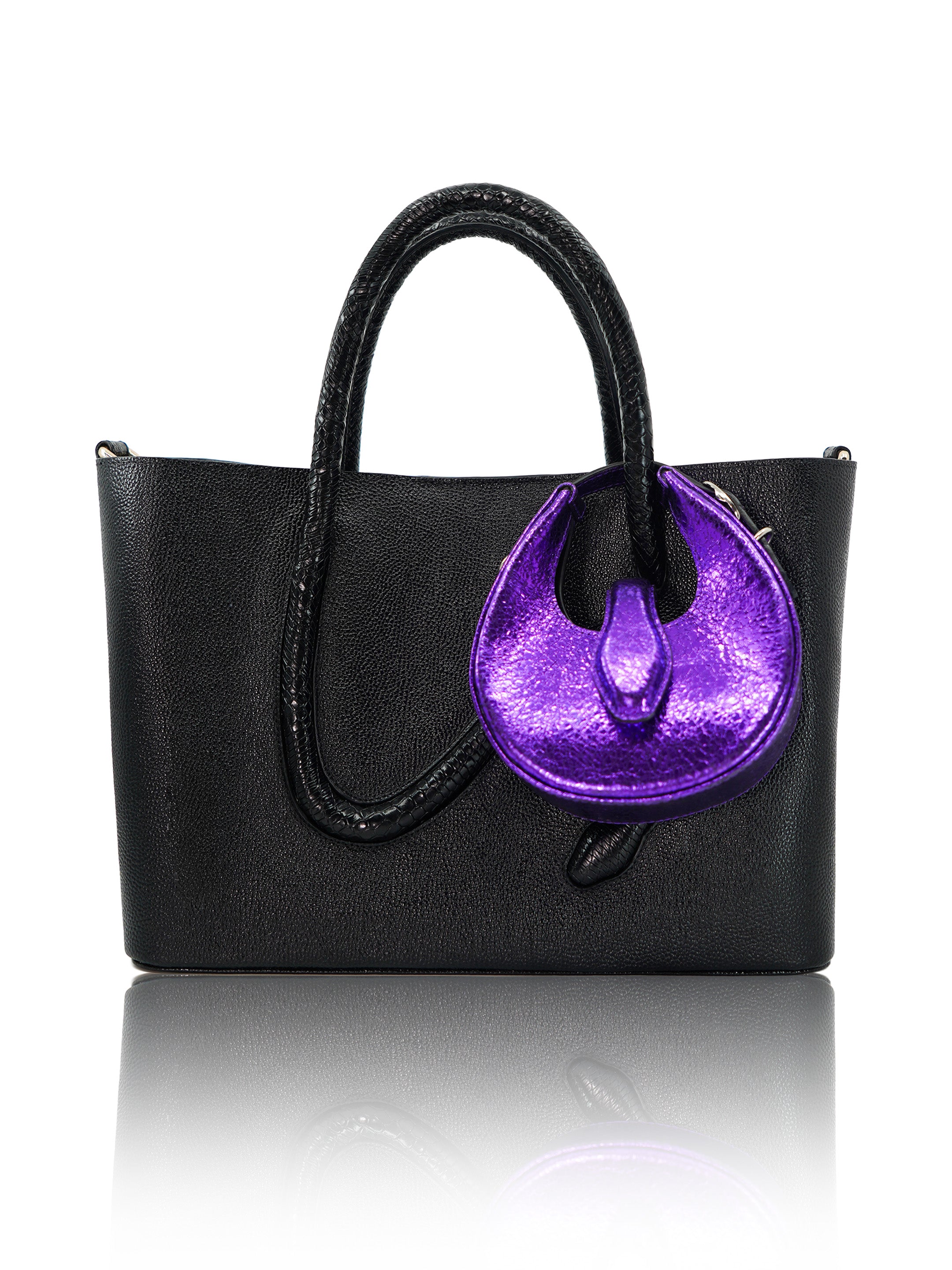 The Fer-de-Lance Mini reimagines the iconic moon-shaped silhouette in a compact form. Inspired by its larger counterpart, it features the signature snake-head closure and a bold, refined presence in a smaller scale.