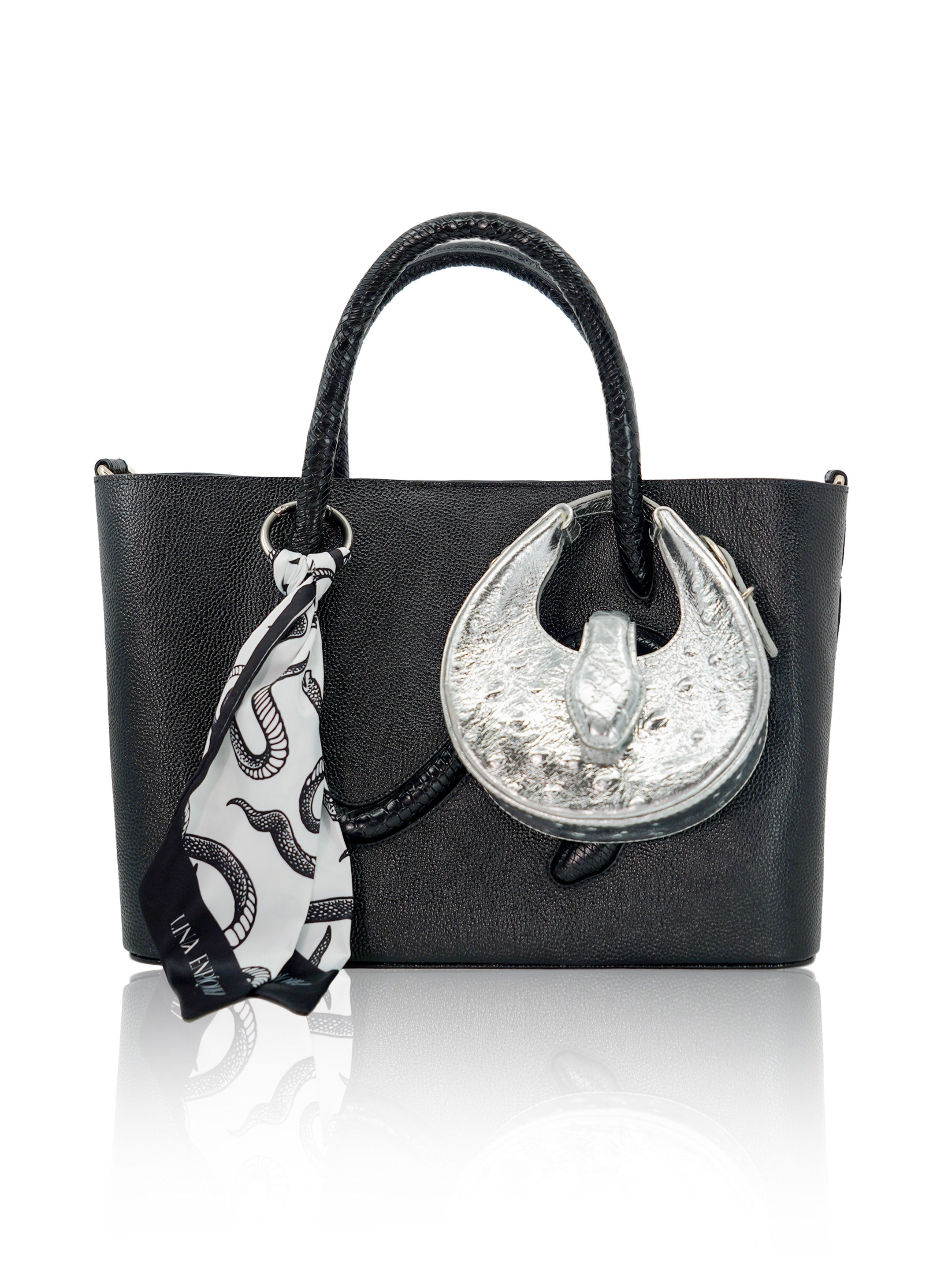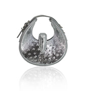 The Fer-de-Lance Mini reimagines the iconic moon-shaped silhouette in a compact form. Inspired by its larger counterpart, it features the signature snake-head closure and a bold, refined presence in a smaller scale.