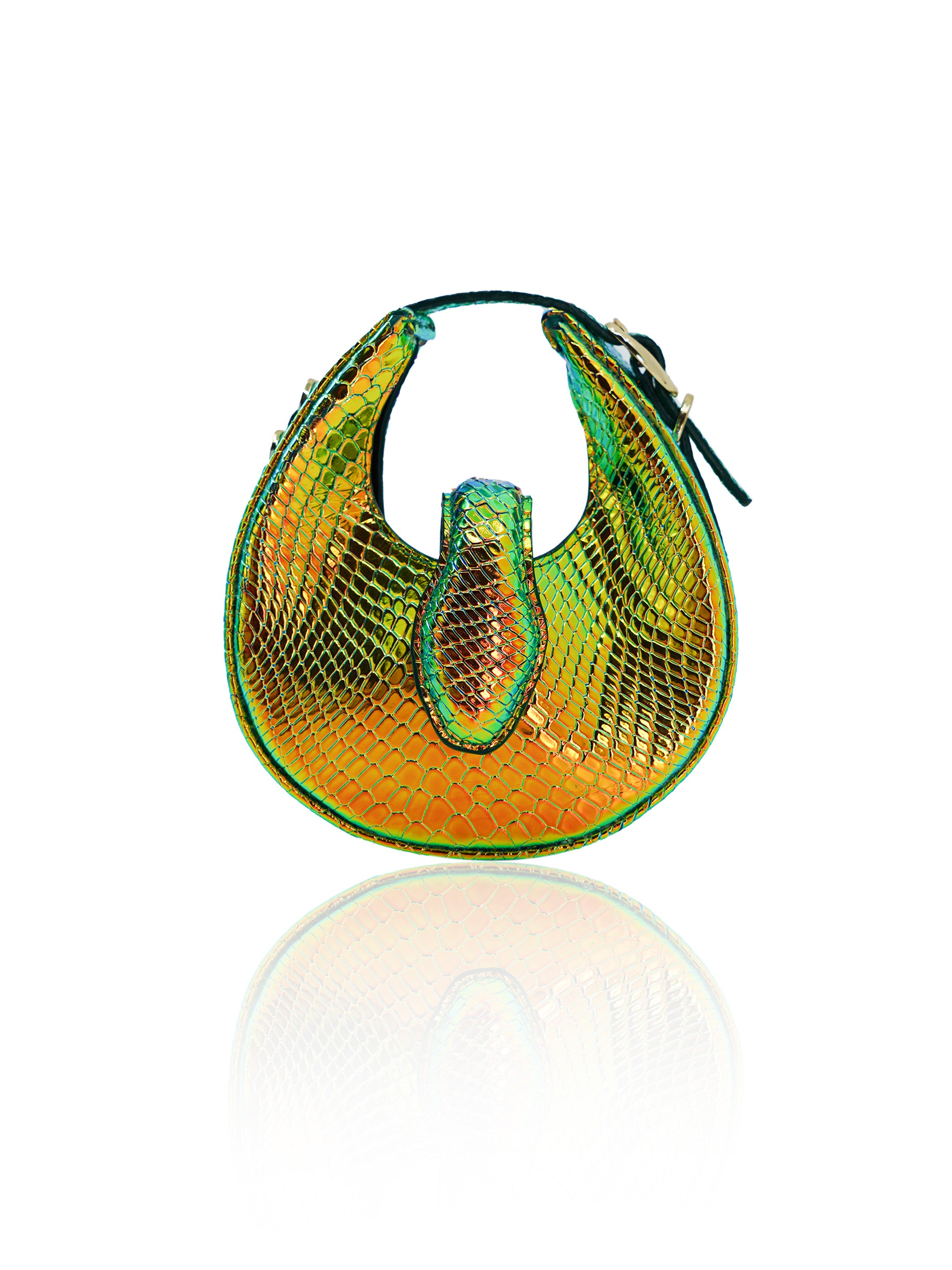 The Fer-de-Lance Mini reimagines the iconic moon-shaped silhouette in a compact form. Inspired by its larger counterpart, it features the signature snake-head closure and a bold, refined presence in a smaller scale.